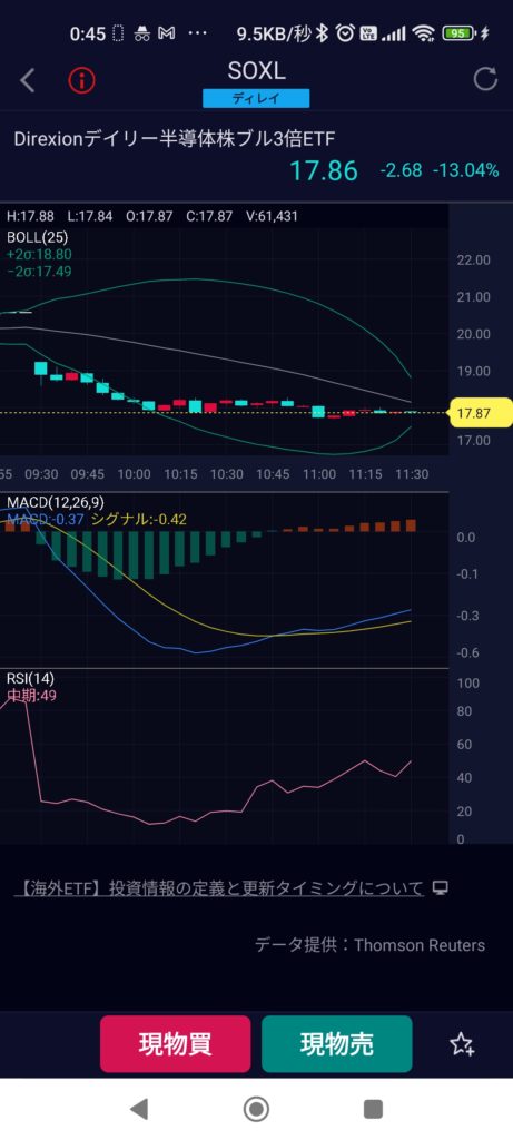 先週の金曜日にSOXLを200口で1ドル勝ち取るという勝負にでて、返討ちに遭いー200のダメージを追った筆者です。