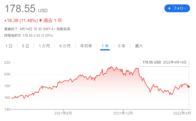 1年間のチャートなんだけどピークは2021年12月前後になっていて、2022年4月は停滞しているよ。
