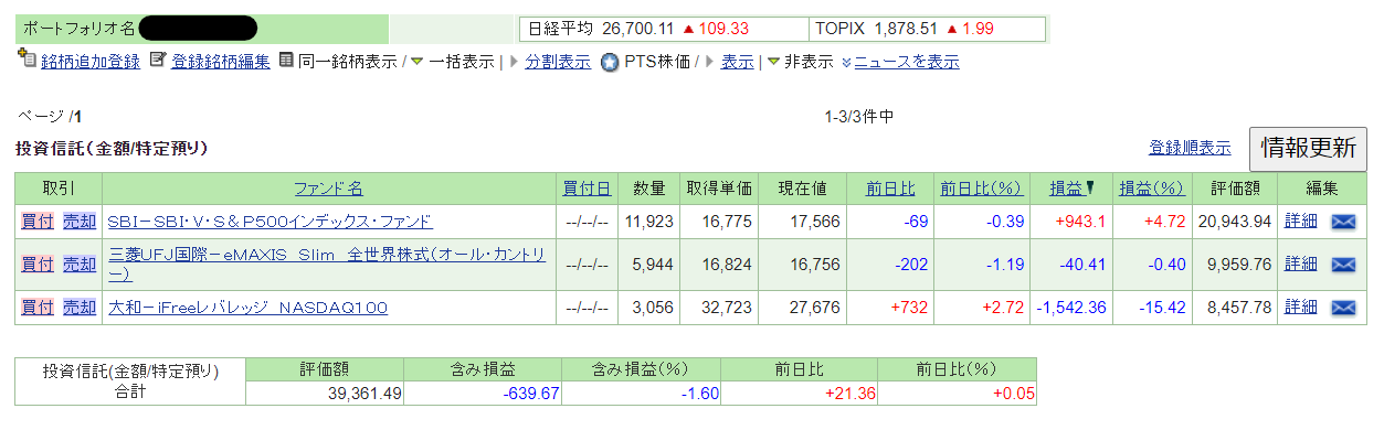 追加購入すれば、取得単価が下がるので、現在値に近づいていくし口数も増えるから一石二鳥だね。