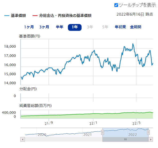 しかしファンドの値動きでは18,000から16,500までしか下がっていません。