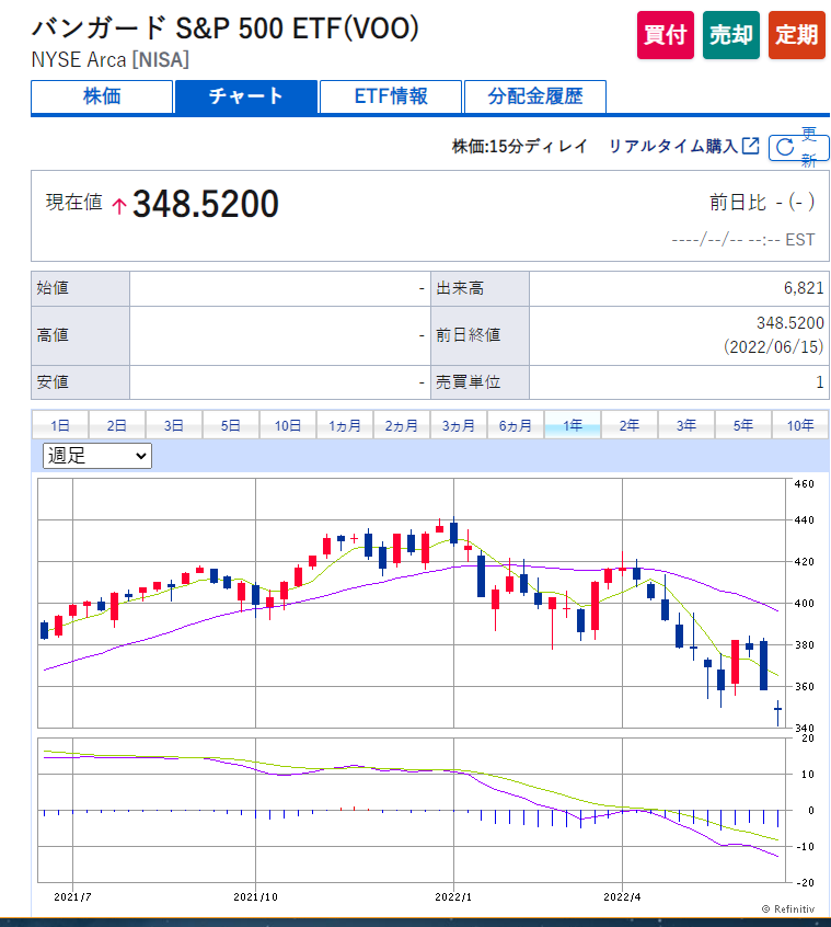 ETFのVOOはドル建てで購入する商品なので、為替の影響を受けずに安くなっています。