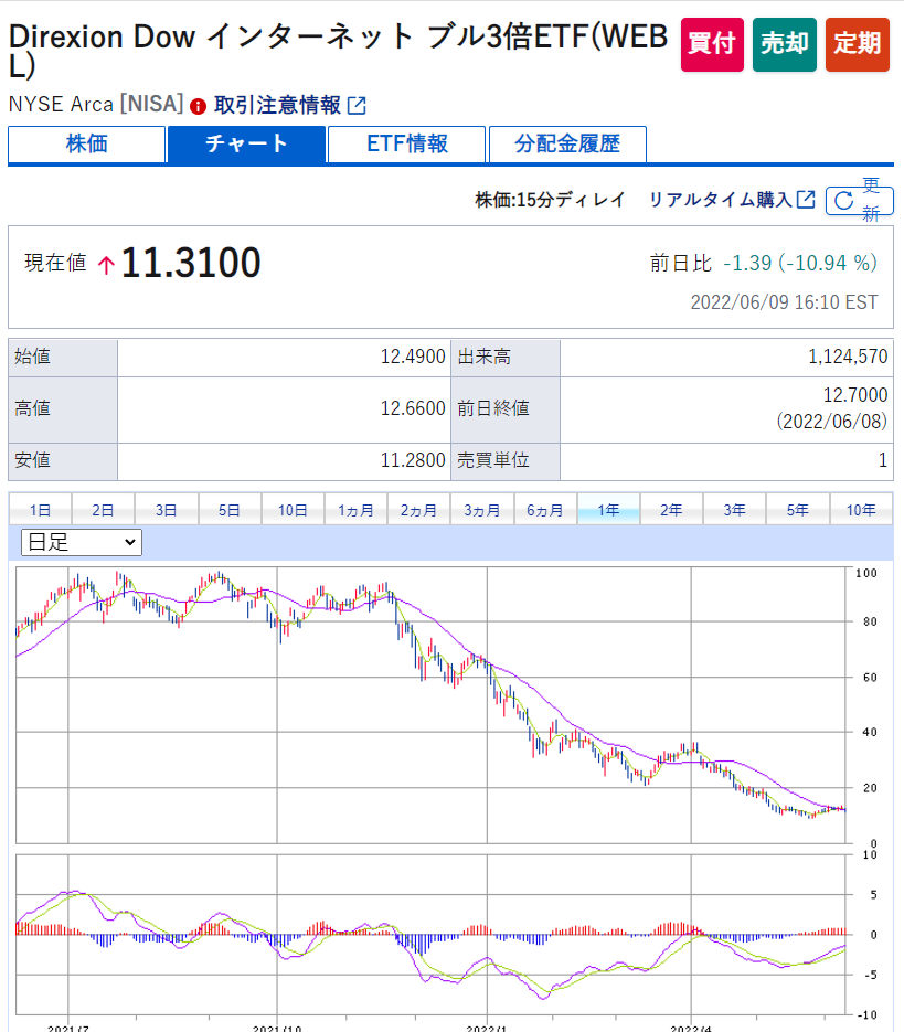 名前の通りインターネット分野(WEB)に特化した3倍レバレッジ型(名前の末のLは3倍レバレッジ商品のことみたいです。)のETF商品です。