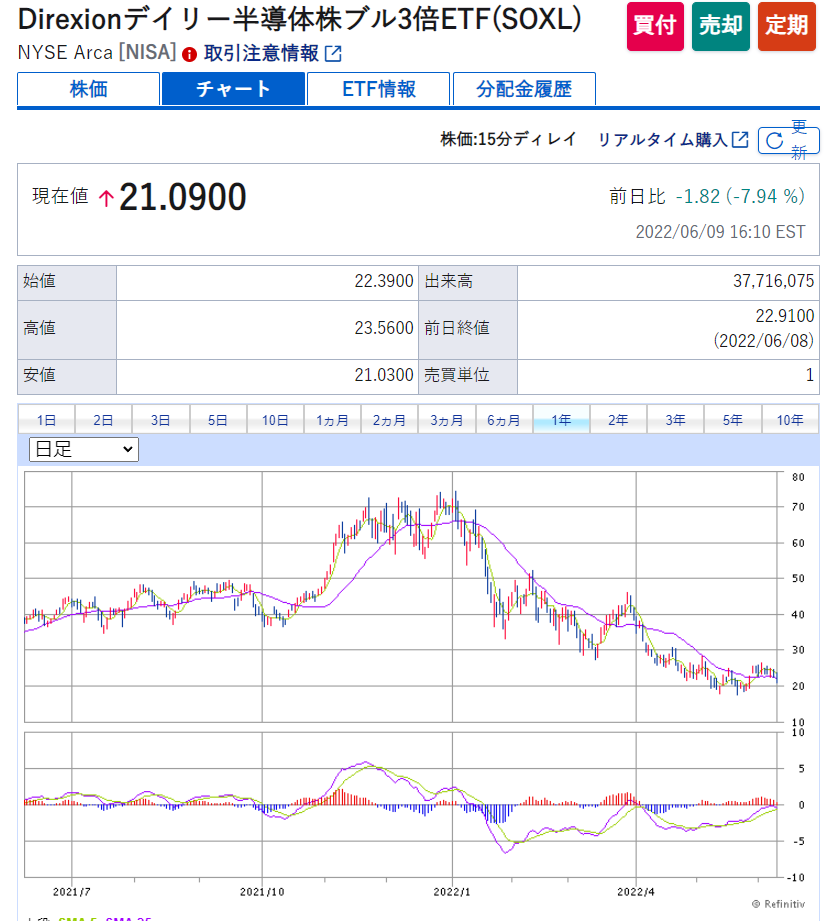 名前の通り半導体分野(シリコンですね)に特化した3倍レバレッジ型(名前の末のLは3倍レバレッジ商品のことみたいです。)のETF商品です。